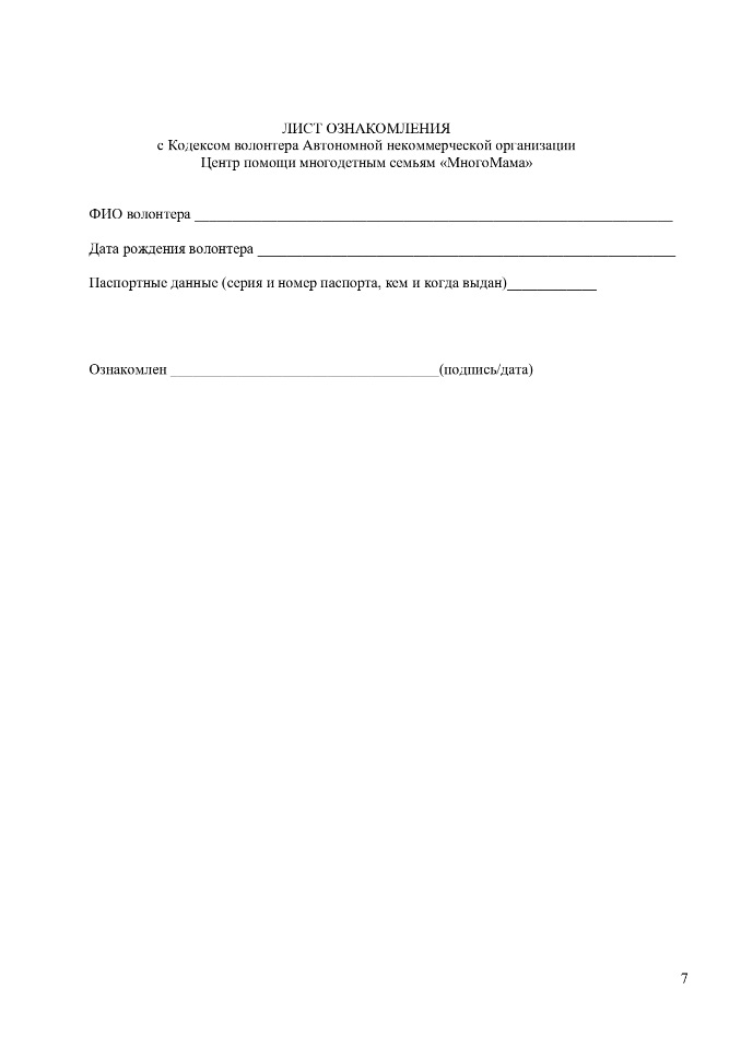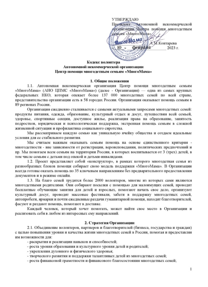 Кодекс волонтера 2023 г. АНО Центр помощи многодетным семьям «МногоМама»