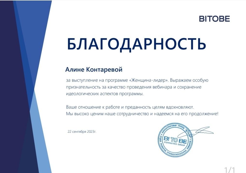 Участник и финалист проекта "Женщины - лидеры" платформы Сенеж.