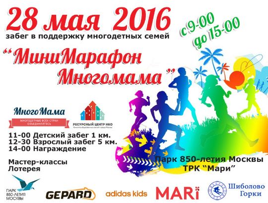 АНО ЦПМС «МногоМама» с 2016 года ежегодно проводит забеги в поддержку многодетных семей! Мы проводили забеги в парках, на стадионах, на крыше торгового центра, а также в 54 городах России в режиме онлайн.