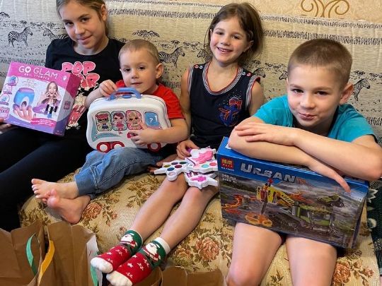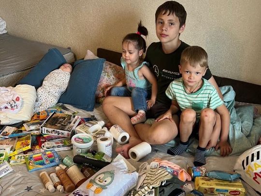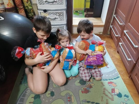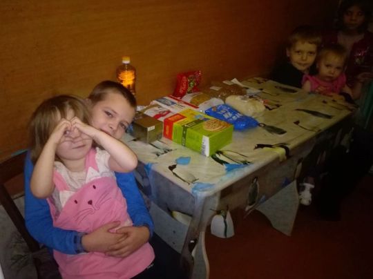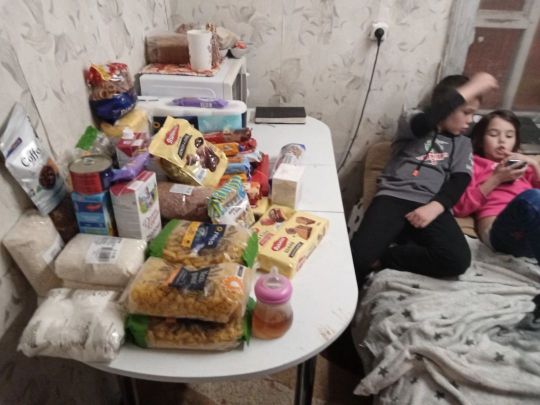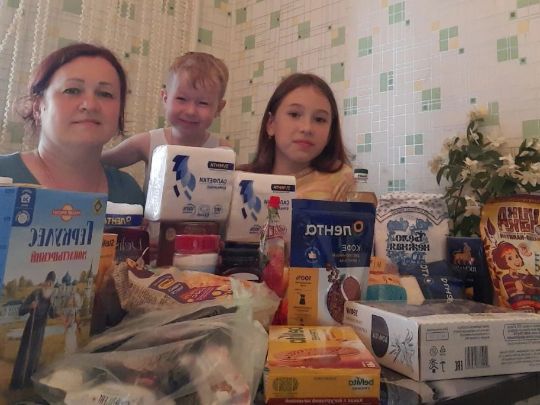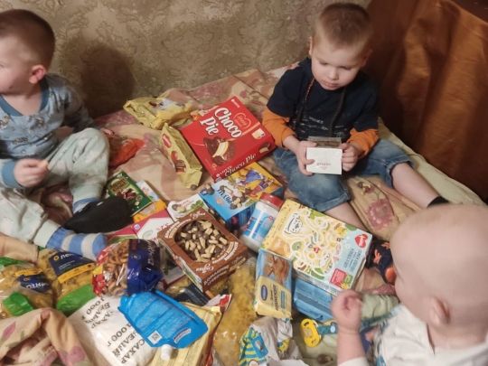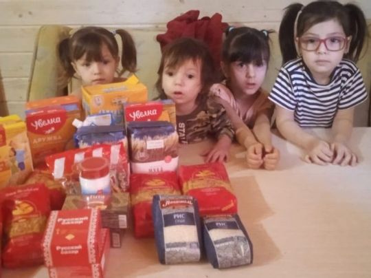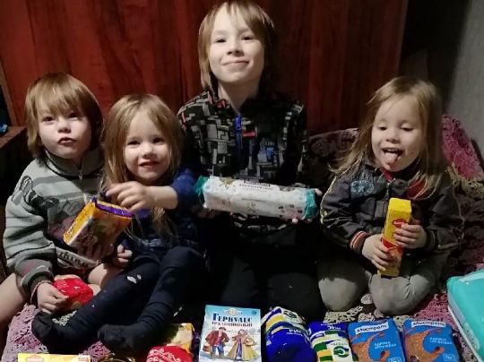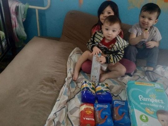 В данный момент семья находится в очень сложном положении, мы передали маме и детям набор продуктов.