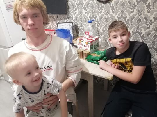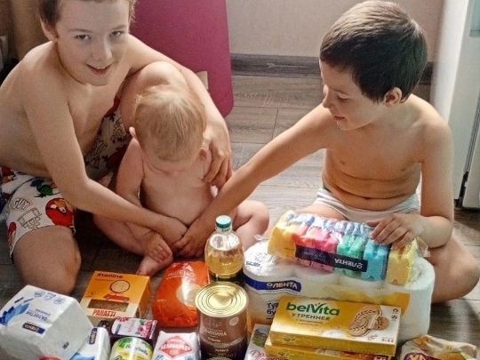 В данный момент семья находится в очень сложном положении, мы оказали посильную помощь и отправили набор продуктов мамочке и детям.