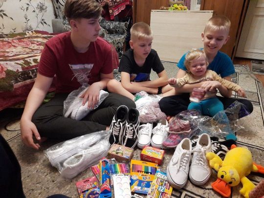 Помощь обувью, одеждой, едой, средствамигигиены оказана семье из города Рыбное. В семье воспитываются 3 детишек. Мы оказали посильную помощь.